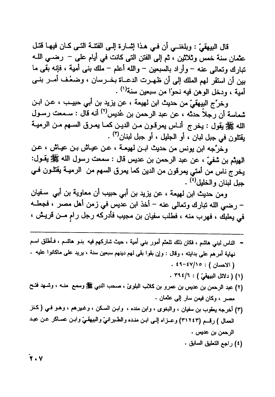 وخرّج البيهقيّ من حديث ابن لهيعة، عن يزيد بن أبي حبيب، عن ابن شماسة أن رجلا حدثه، عن عبد الرحمن بن عديس [ (2) ] أنه قال: سمعت رسول اللَّه صلّى اللَّه عليه وسلّم يقول: يخرج أناس يمرقون من الدين كما يمرق السهم من الرمية يقتلون في جبل لبان، أو الجليل، أو جبل لبنان [ (3) ] .