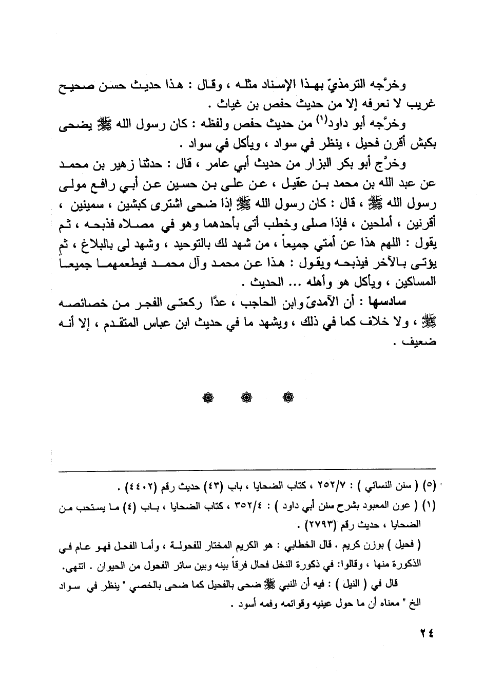 [ (1) ] (عون المعبود بشرح سنن أبي داود) : 4/ 352، كتاب الضحايا، باب (4) ما يستحب من الضحايا، حديث رقم (2793) .