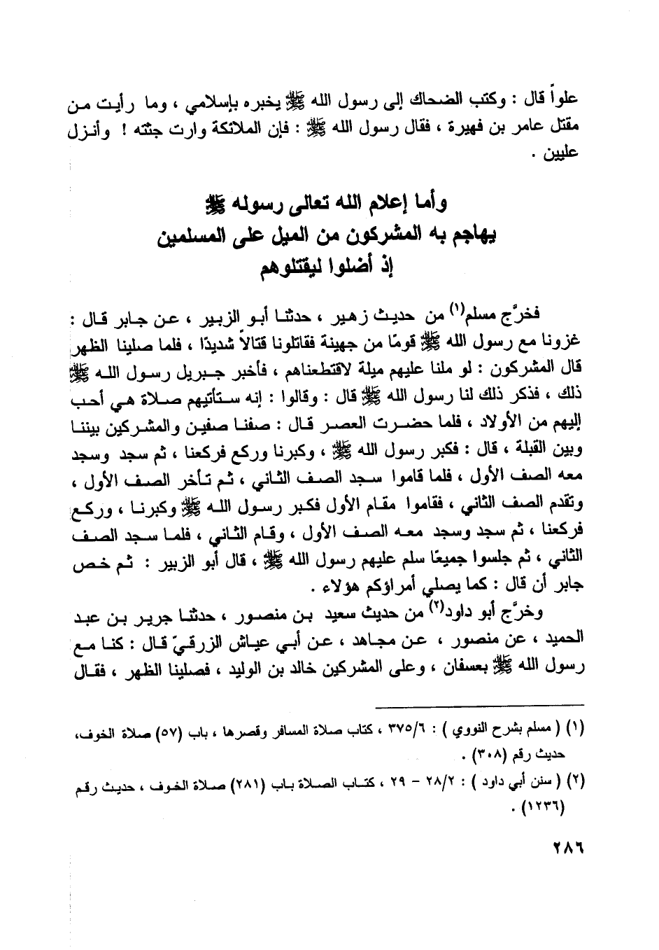 [ (2) ] (سنن أبي داود) : 2/ 28- 29، كتاب الصلاة باب (281) صلاة الخوف، حديث رقم (1236) .