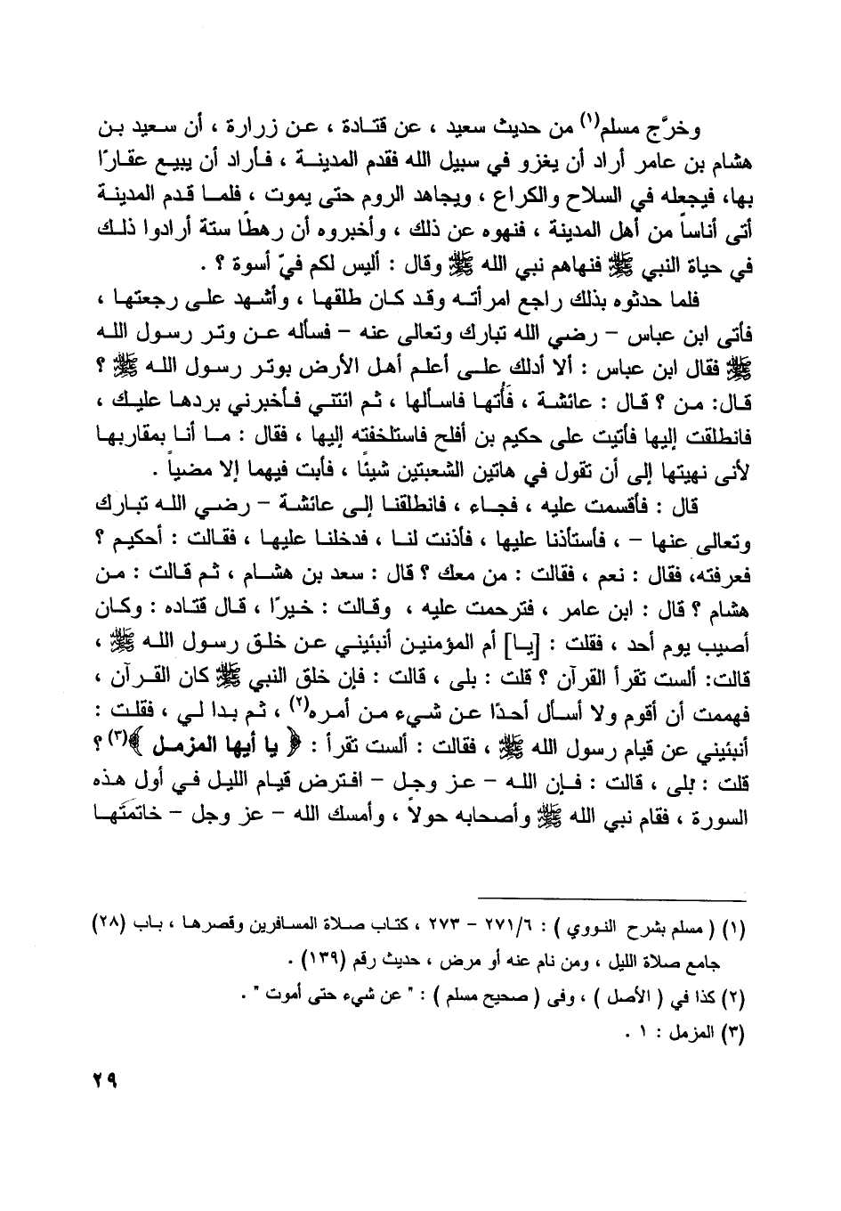 [ (1) ] (مسلم بشرح النووي) : 6/ 271- 273، كتاب صلاة المسافرين وقصرها، باب (28) جامع صلاة الليل، ومن نام عنه أو مرض، حديث رقم (139) .