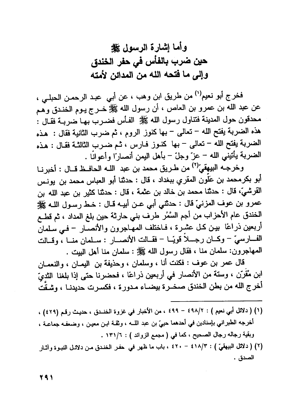 [ (2) ] (دلائل البيهقيّ) : 3/ 418- 420، باب ما ظهر في حفر الخندق من دلائل النبوة وآثار الصدق.