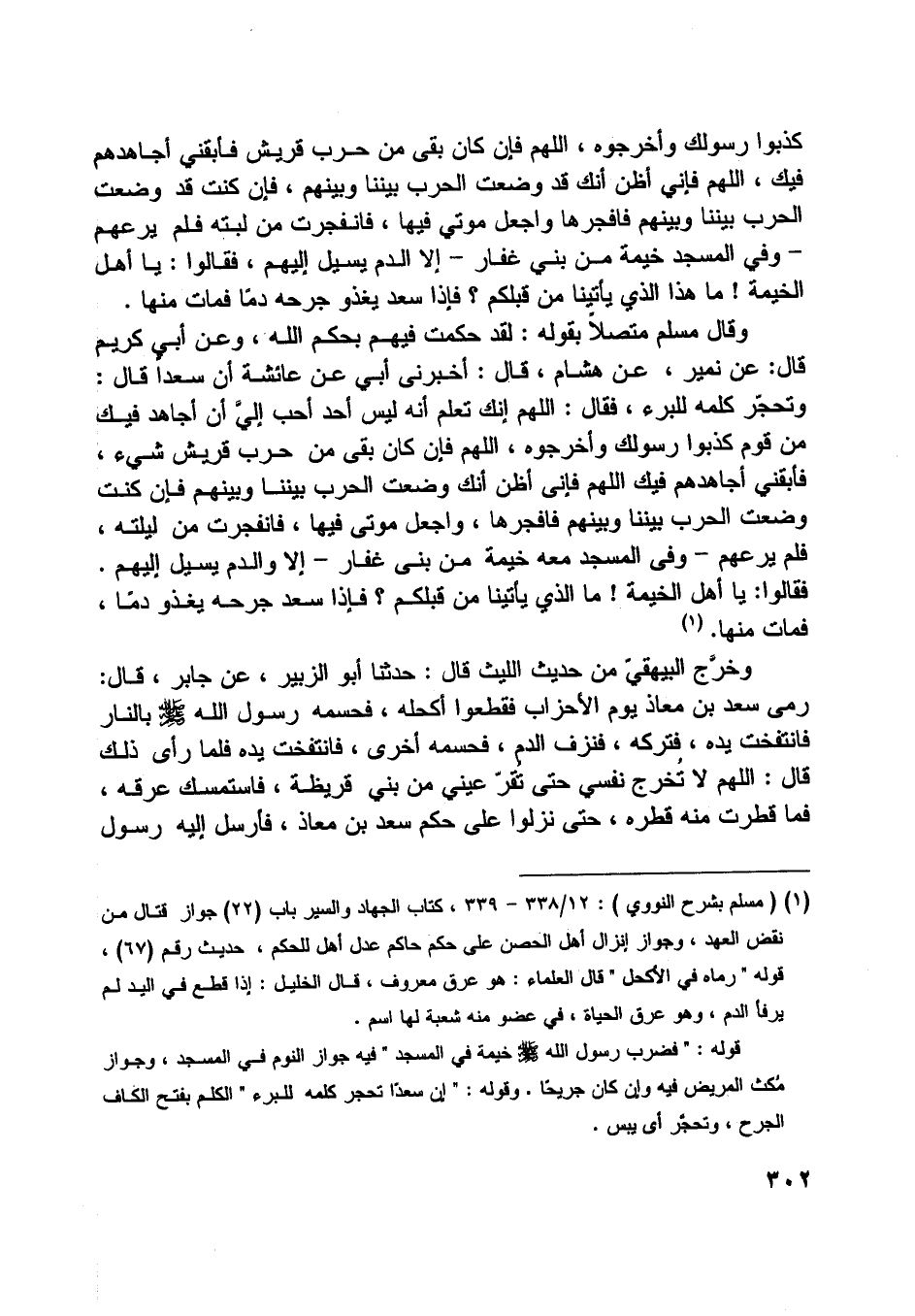[ (1) ] (مسلم بشرح النووي) : 12/ 338- 339، كتاب الجهاد والسير باب (22) جواز قتال من نقض العهد، وجواز إنزال أهل الحصن على حكم حاكم عدل أهل للحكم، حديث رقم (67) ، قوله «رماه في الأكحل» قال العلماء: هو عرق معروف، قال الخليل: إذا قطع في اليد لم يرفأ الدم، وهو عرق الحياة، في عضو منه شعبة لها اسم.