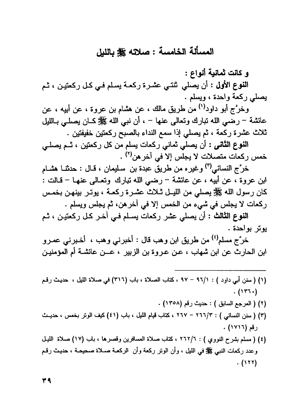 [ (1) ] (سنن أبي داود) : 1/ 96- 97، كتاب الصلاة، باب (316) في صلاة الليل، حديث رقم (1360) .