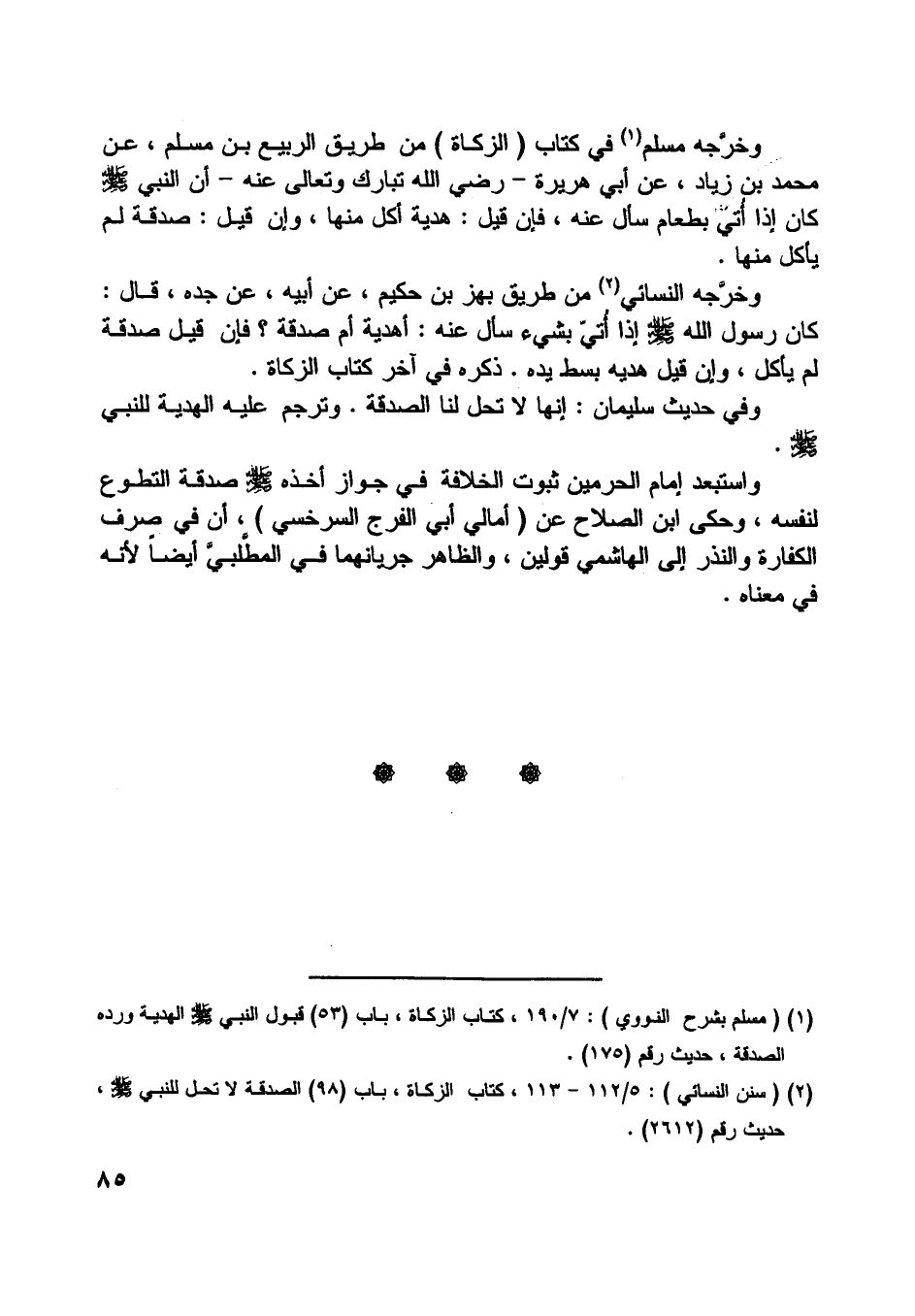 [ (1) ] (مسلم بشرح النووي) : 7/ 190، كتاب الزكاة، باب (53) قبول النبي صلّى اللَّه عليه وسلّم الهدية ورده الصدقة، حديث رقم (175) .