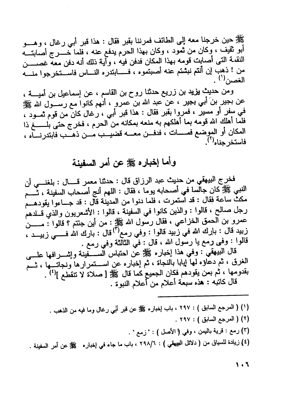 [ (1) ] (المرجع السابق) : 297، باب إخباره صلّى اللَّه عليه وسلّم عن قبر أبي رغال وما فيه من الذهب.