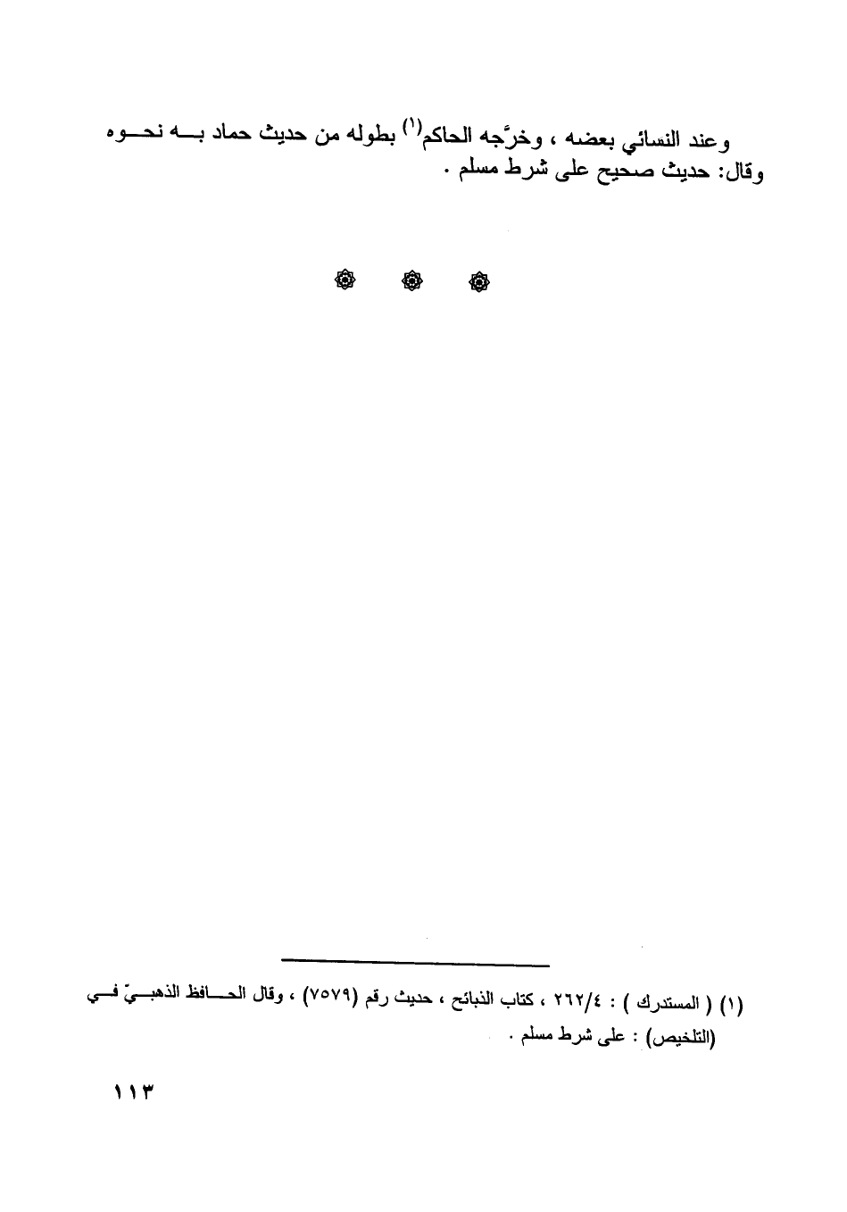 [ (1) ] (المستدرك) : 4/ 262، كتاب الذبائح، حديث رقم (7579) ، وقال الحافظ الذهبيّ في (التلخيص) : على شرط مسلم.