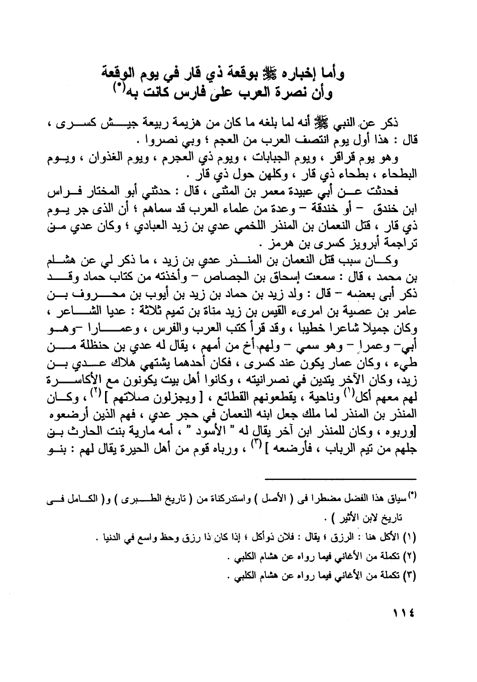 وأما إخباره صلّى اللَّه عليه وسلّم بوقعة ذي قار في يوم الوقعة وأن نصرة العرب على فارس كانت به [ (1) ]