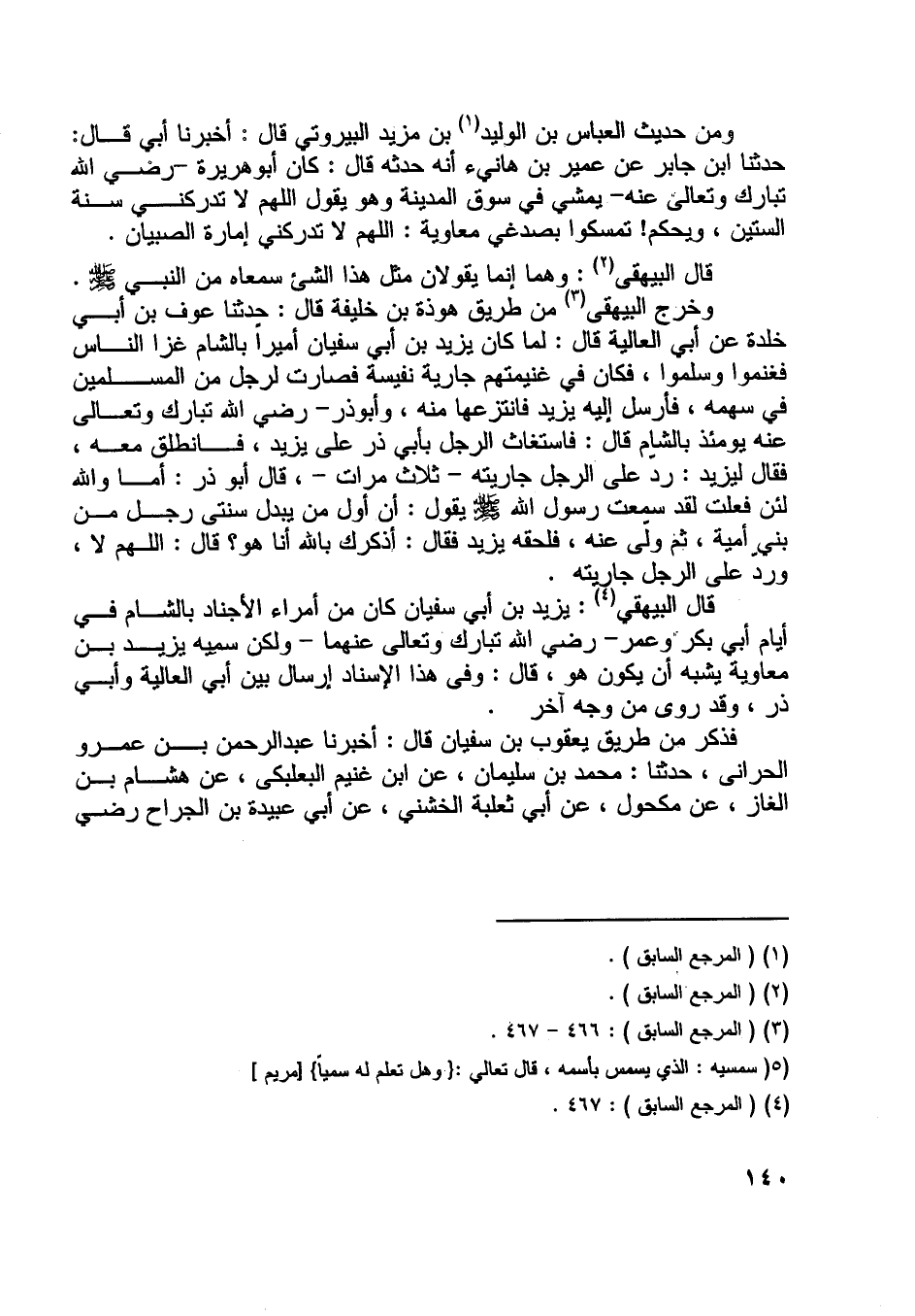 قال البيهقي [ (4) ] : يزيد بن أبي سفيان كان من أمراء الأجناد بالشام في أيام أبي بكر وعمر- رضي اللَّه تبارك وتعالى عنهما- ولكن سميه [ (5) ] يزيد بن معاوية يشبه أن يكون هو، قال: وفي هذا الإسناد إرسال بين أبي العالية وأبي ذر، وقد روى من وجه آخر.