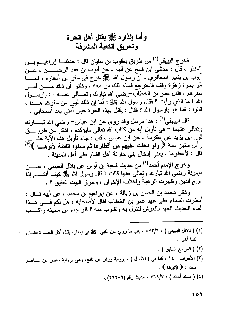 [ (1) ] (دلائل البيهقي) : 6/ 473، باب ما روي عن النبي صلّى اللَّه عليه وسلم في إخباره بقتل أهل الحرة فكان كما أخبر.