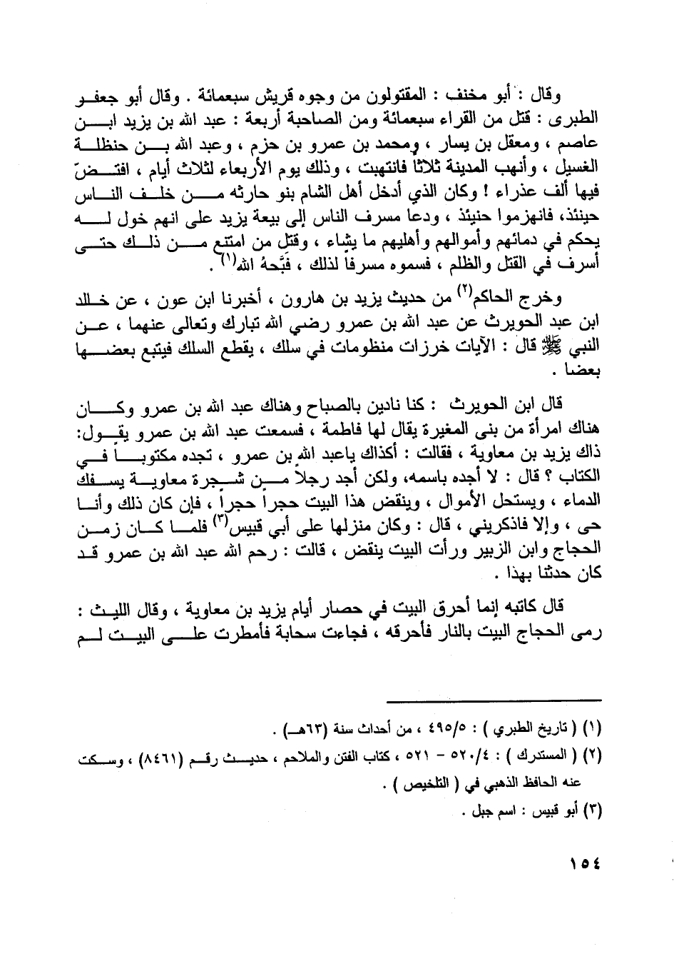[ (1) ] (تاريخ الطبري) : 5/ 495، من أحداث سنة (63 هـ) .
