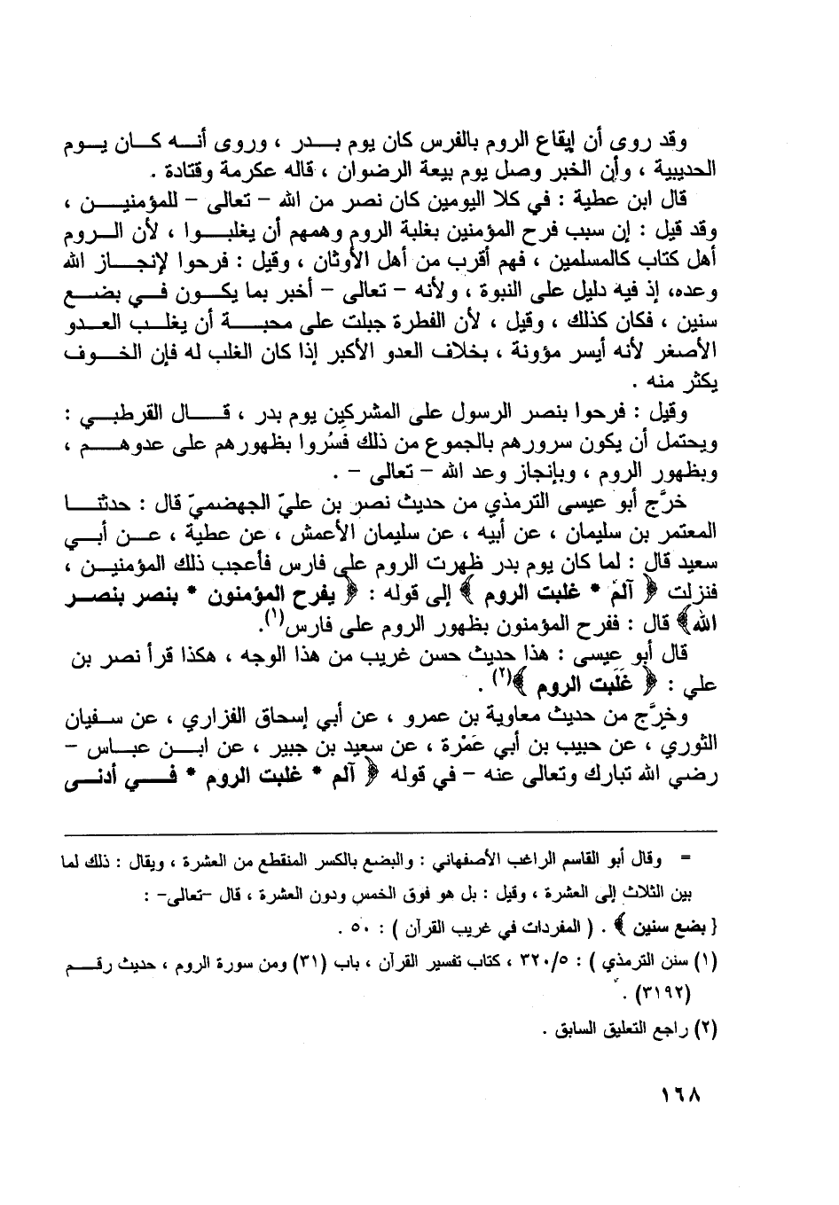 [ (1) ] سنن الترمذي: 5/ 320، كتاب تفسير القرآن، باب (31) ومن سورة الروم، حديث رقم (3192) .