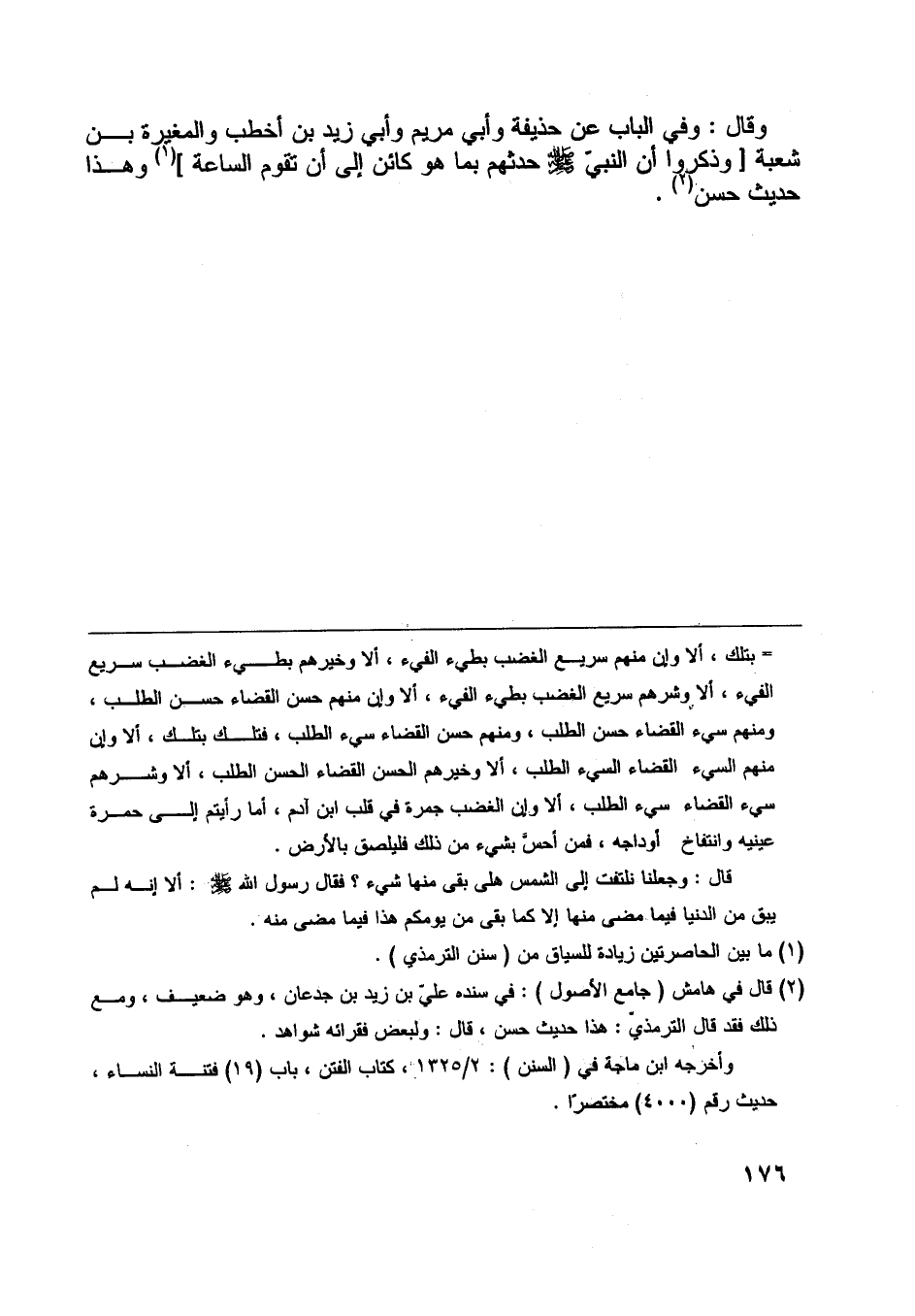 [ (2) ] قال في هامش (جامع الأصول) : في سنده عليّ بن زيد بن جدعان، وهو ضعيف، ومع ذلك فقد قال الترمذيّ: هذا حديث حسن، قال: ولبعض فقرائه شواهد.