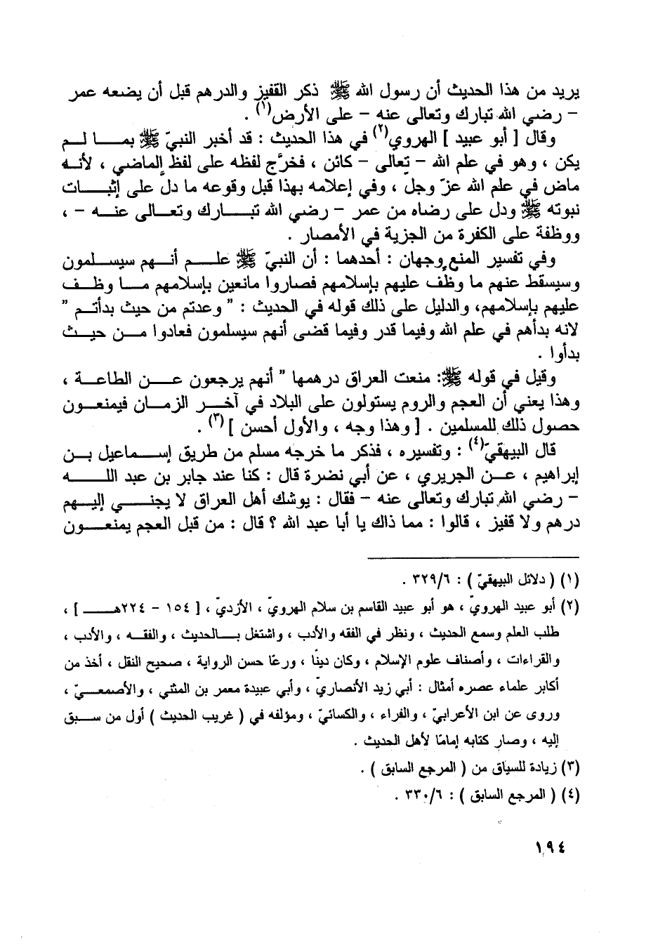 يريد من هذا الحديث أن رسول اللَّه صلى اللَّه عليه وسلم ذكر القفيز والدرهم قبل أن يضعه عمر- رضي اللَّه تبارك وتعالى عنه- على الأرض [ (1) ] .