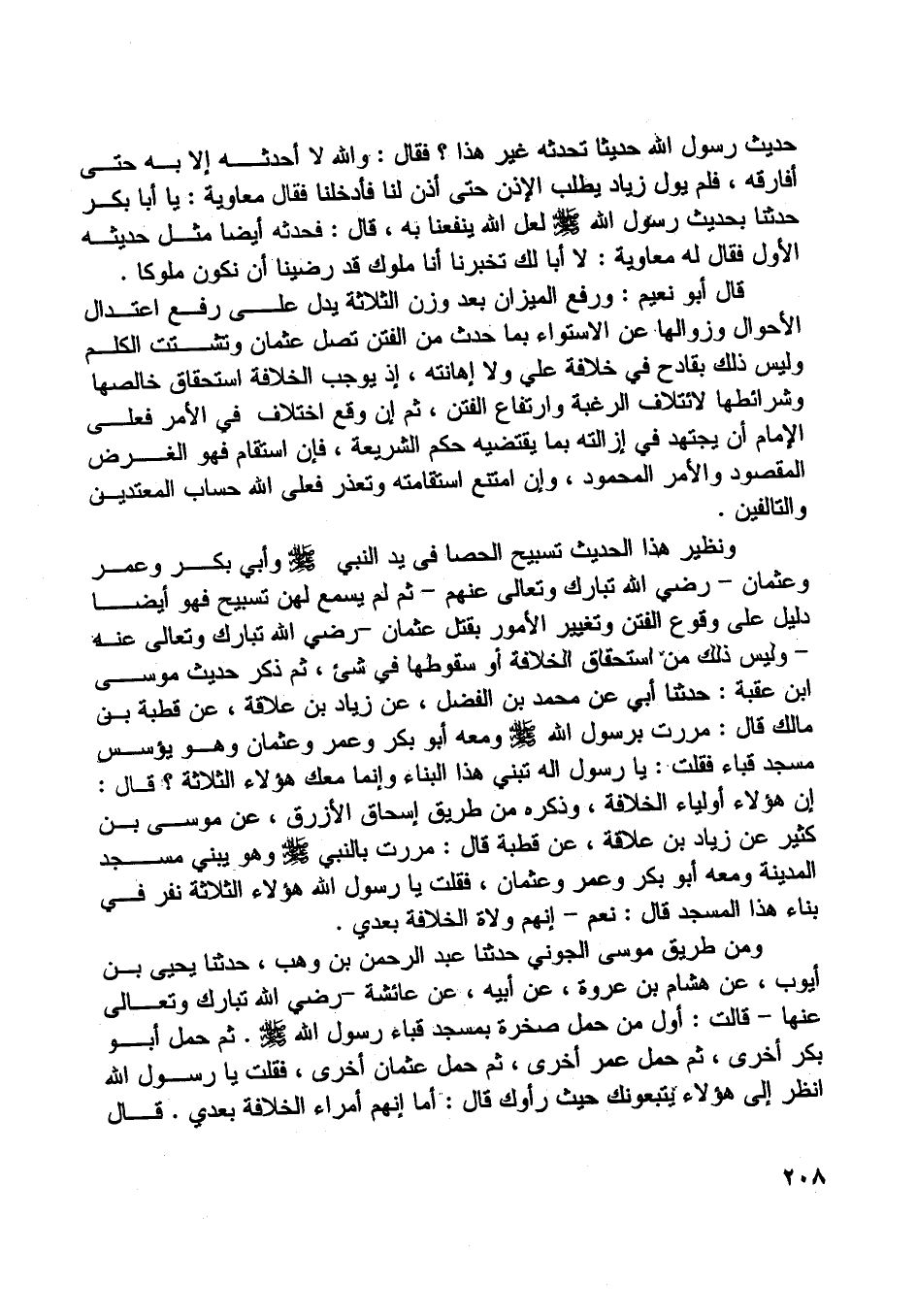 ذكر حديث موسى ابن عقبة: حدثنا أبي عن محمد بن الفضل، عن زياد بن علاقة، عن قطبة بن مالك قال: مررت برسول اللَّه صلى اللَّه عليه وسلم ومعه أبو بكر وعمر وعثمان وهو يؤسس مسجد قباء فقلت: يا رسول اللَّه تبني هذا البناء وإنما معك هؤلاء الثلاثة؟ قال:
