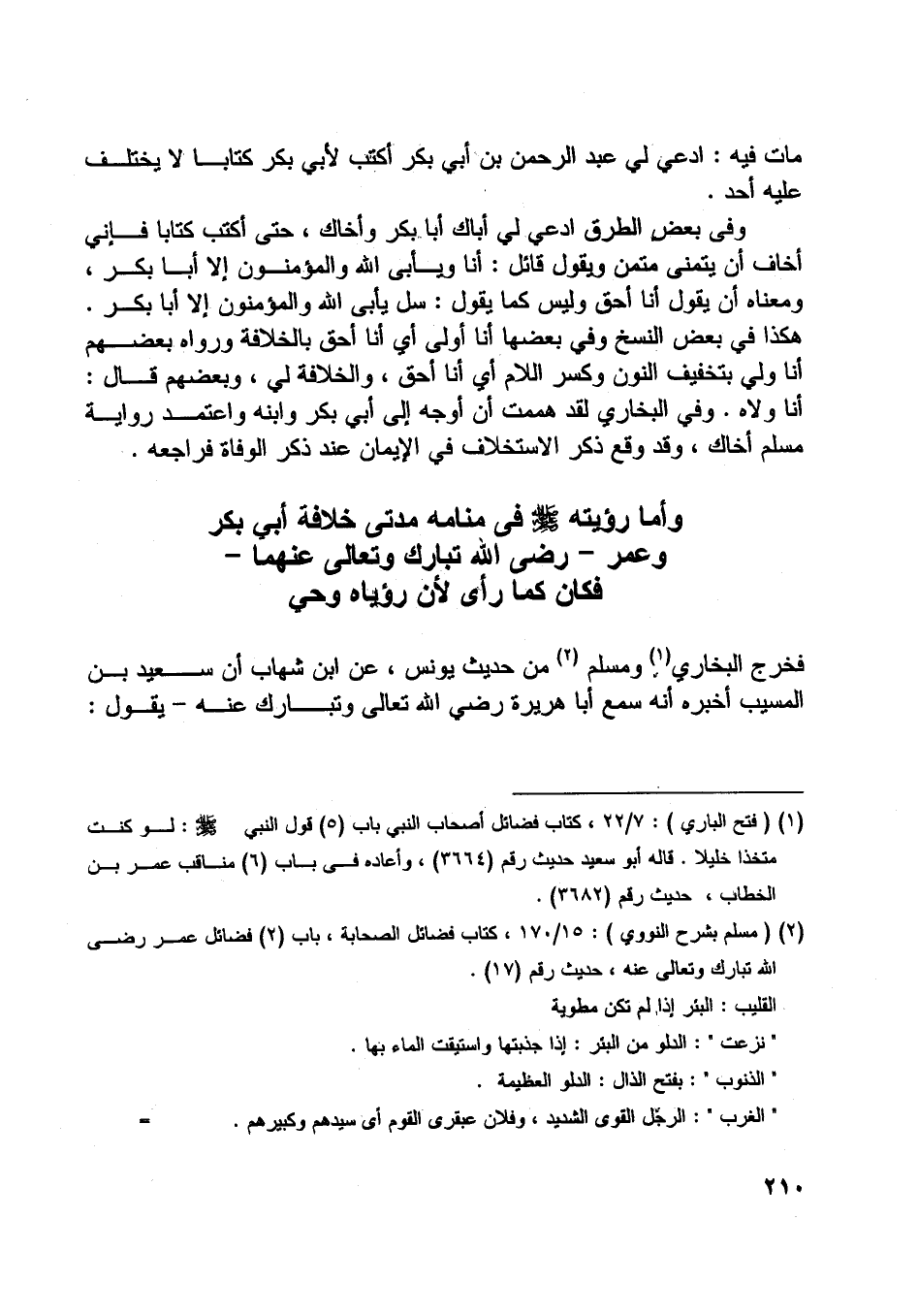 [ (1) ] (فتح الباري) : 7/ 22، كتاب فضائل أصحاب النبي باب (5) قول النبي صلى اللَّه عليه وسلم: لو كنت متخذا خليلا. قاله أبو سعيد حديث رقم (3664) ، وأعاده في باب (6) مناقب عمر بن الخطاب، حديث رقم (3682) .