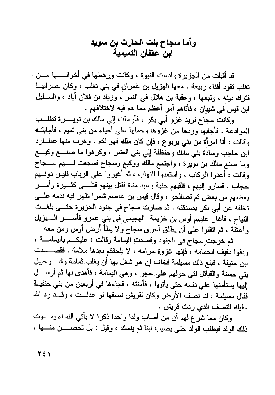 وأما سجاح بنت الحارث بن سويد ابن عقفان التميمية