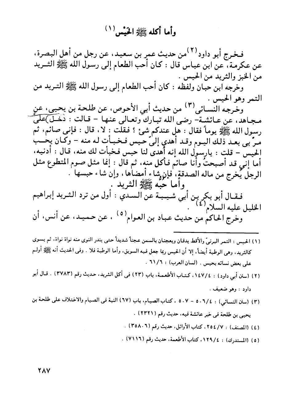 [ (2) ] (سنن أبي داود) : 4/ 147، كتاب الأطعمة، باب (23) في أكل الثريد، حديث رقم (3783) . قال أبو داود: وهو ضعيف.