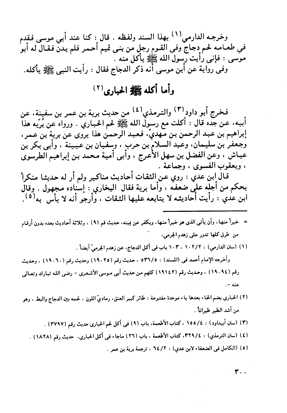 [ (4) ] (سنن الترمذي) : 4/ 329، كتاب الأطعمة، باب (26) ما جاء في أكل الحبارى، حديث رقم (1828) .