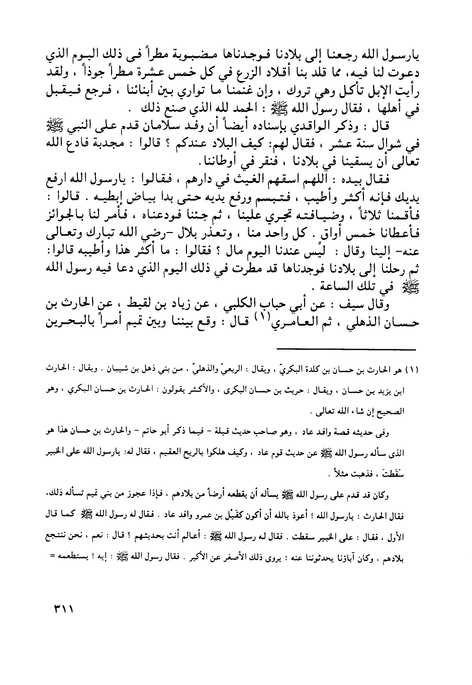 ثم رحلنا إلى بلادنا فوجدناها قد مطرت في ذلك اليوم الّذي دعا فيه رسول اللَّه صلى اللَّه عليه وسلم في تلك الساعة.