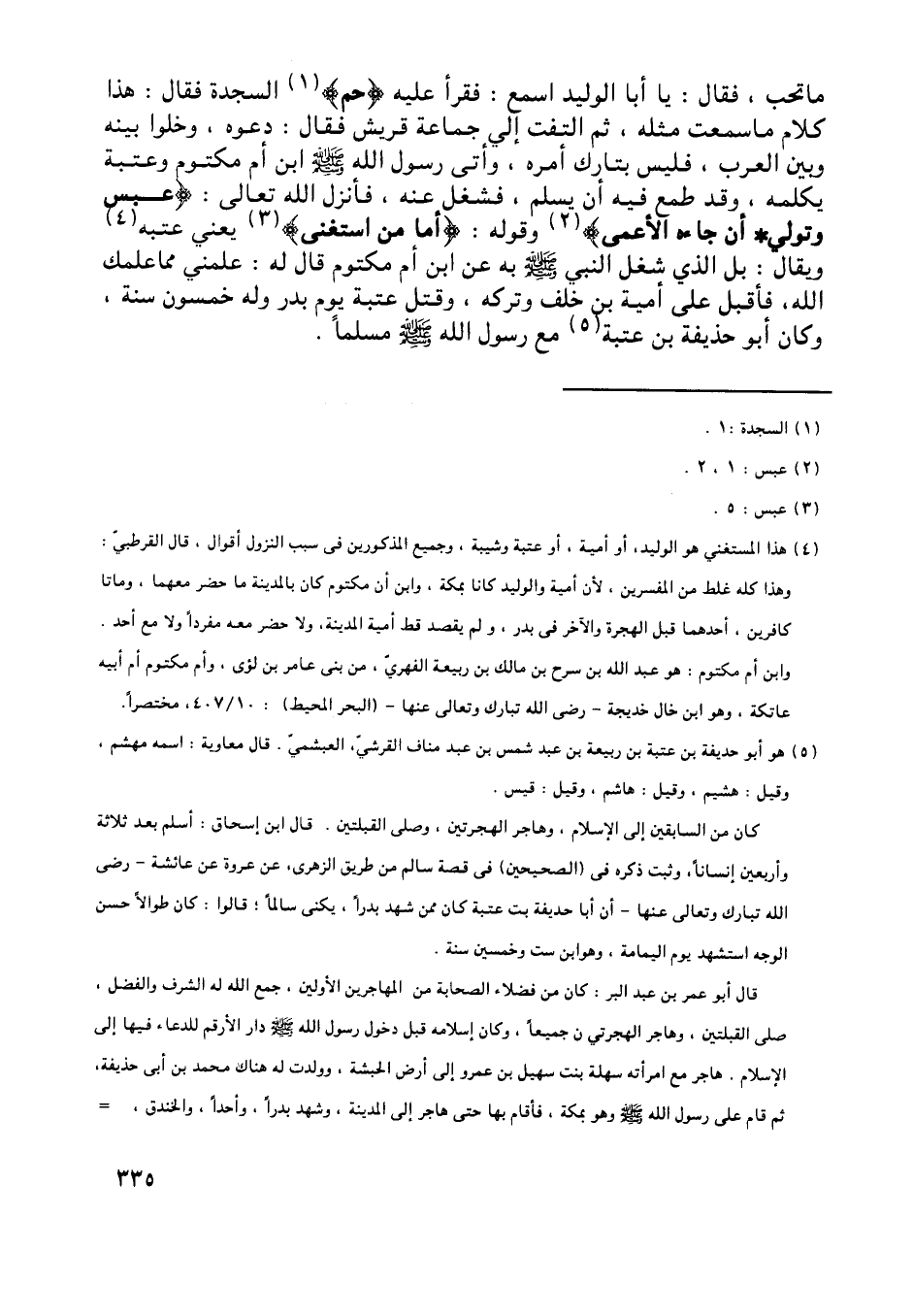 [ (4) ] هذا المستغني هو الوليد، أو أمية، أو عتبة وشيبة، وجميع المذكورين في سبب النزول أقوال، قال القرطبيّ: