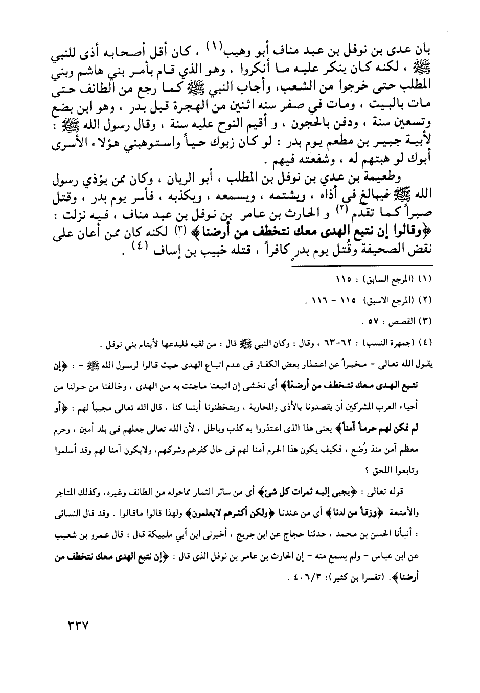 وَقالُوا إِنْ نَتَّبِعِ الْهُدى مَعَكَ نُتَخَطَّفْ مِنْ أَرْضِنا [ (3) ] لكنه كان ممن أعان على نقض الصحيفة وقتل يوم بدر كافرا، قتله خبيب بن إساف [ (4) ] .