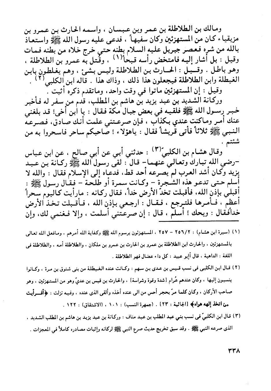 [ (3) ] قال ابن الكلبيّ في نسب بني عبد المطلب بن عبد مناف: وركانة بن عبد يزيد بن هاشم بن المطلب الشديد، الّذي صرعة النبي صلّى اللَّه عليه وسلم. وقد سبق تخريج حديث صرع النبي صلّى اللَّه عليه وسلم لركانه وإثبات مصادره كاملا في المعجزات.