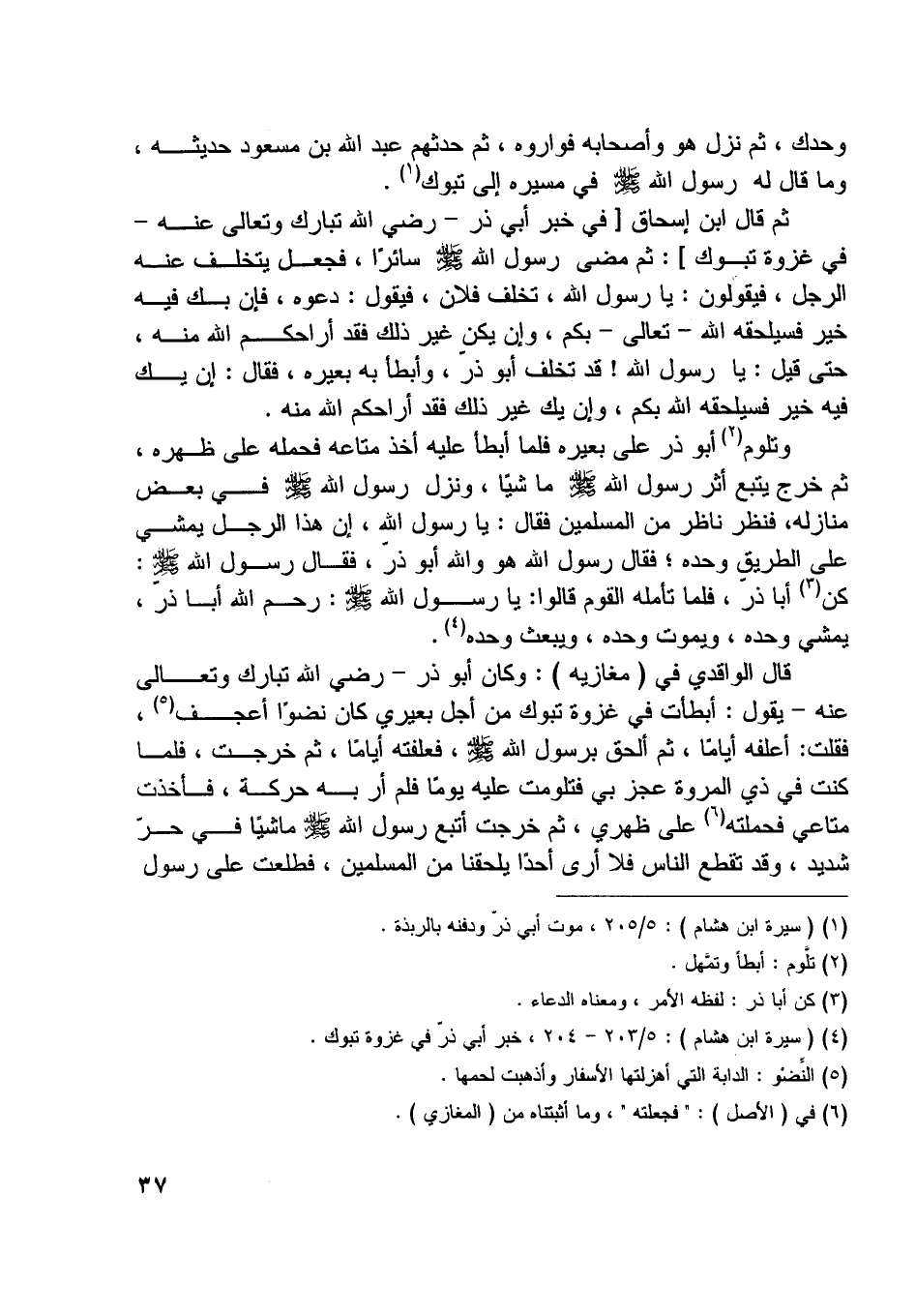 [ (4) ] (سيرة ابن هشام) : 5/ 203- 204، خبر أبي ذرّ في غزوة تبوك.