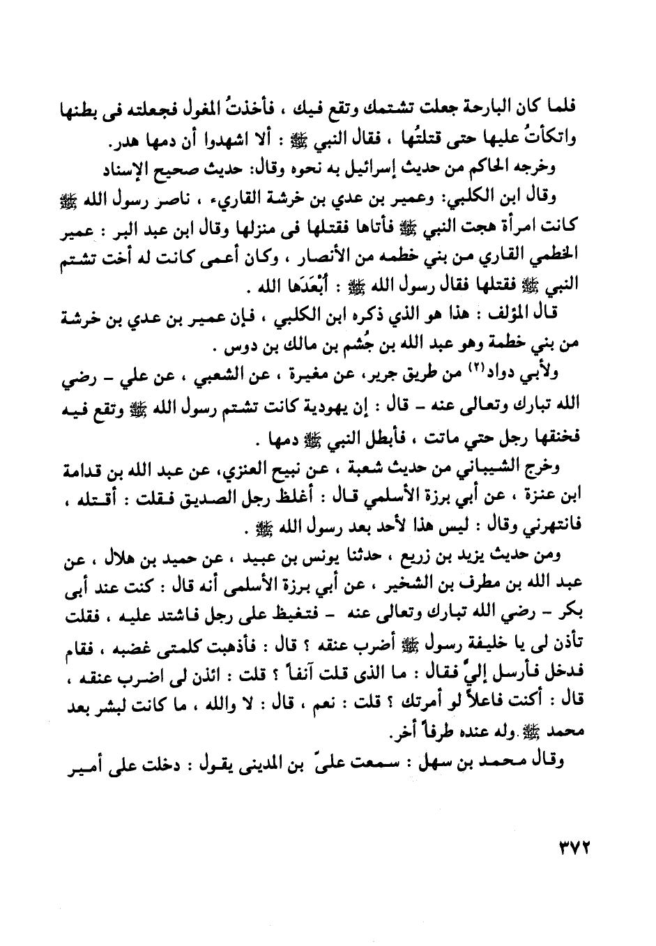 وخرج الشيبانيّ من حديث شعبة، عن نبيح العنزي، عن عبد اللَّه بن قدامة ابن عنزة، عن أبي برزة الأسلمي قال: أغلظ رجل الصديق فقلت: أقتله، فانتهرني وقال: ليس هذا لأحد بعد رسول اللَّه صلّى اللَّه عليه وسلّم.