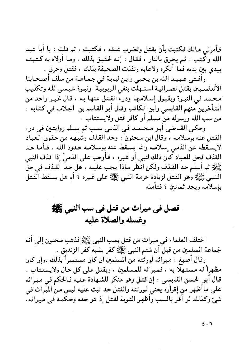اختلف العلماء في ميراث من قتل بسب النبي صلّى اللَّه عليه وسلّم فذهب سحنون إلي أنه لجماعة المسلمين من قبل أن شتم النبي صلّى اللَّه عليه وسلّم كفر يشبه كفر الزنديق.