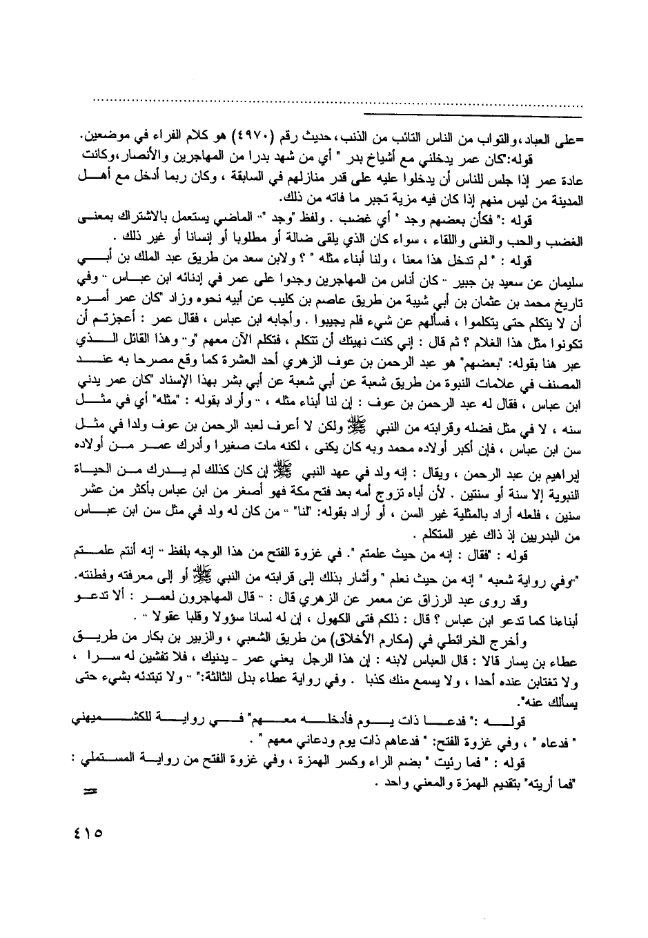 وقد روى عبد الرزاق عن معمر عن الزهري قال: قال المهاجرون العمر: ألا تدعو أبناءنا كما تدعو ابن عباس؟ قال: ذلكم فتى الكهول، إن له لسانا سئولا وقلبا عقولا.