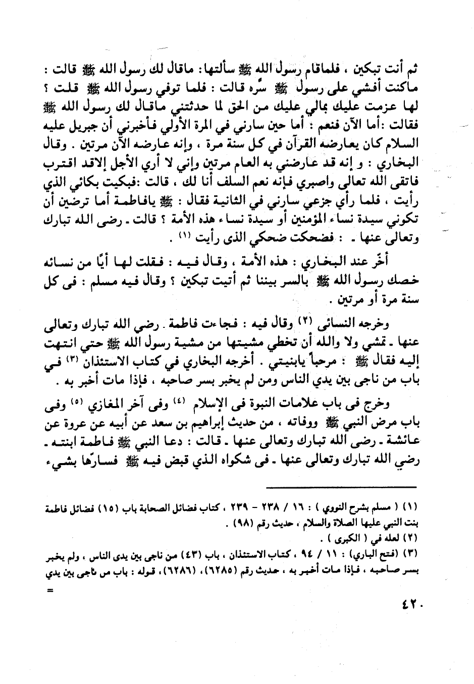 [ (1) ] (مسلم بشرح النووي) : 16/ 238- 239، كتاب فضائل الصحابة باب (15) فضائل فاطمة بنت النبي عليها الصلاة والسلام، حديث رقم (98) .