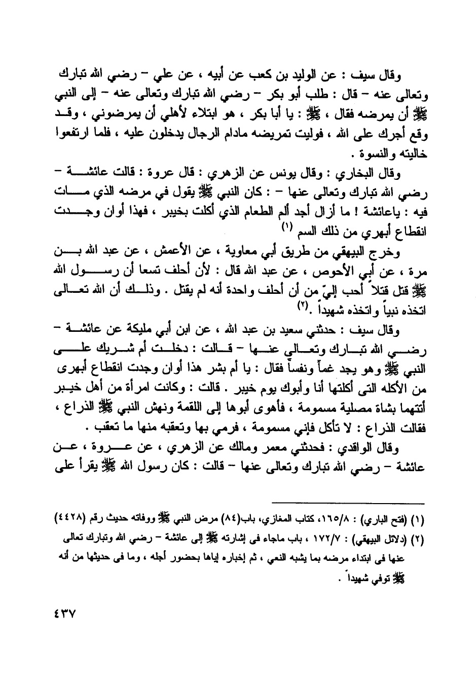 [ (2) ] (دلائل البيهقي) : 7/ 172، باب ما جاء في إشارته صلى اللَّه عليه وسلم إلى عائشة- رضي اللَّه تبارك وتعالى عنها- في ابتداء مرضه بما يشبه النعي، ثم إخباره إياها بحضور أجله، وما في حديثها من أنه صلى اللَّه عليه وسلم توفي شهيدا.