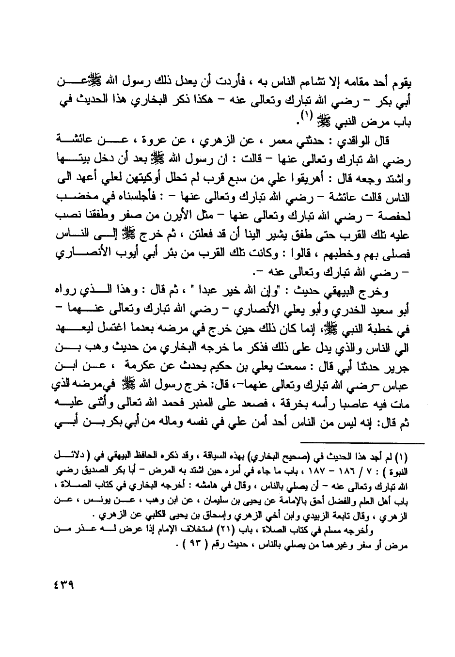 [ (1) ] لم أجد هذا الحديث في (صحيح البخاري) بهذه السياقة، وقد ذكره الحافظ البيهقي في (دلائل النبوة) : 7/ 186- 187، باب ما جاء في أمره حين اشتد به المرض- أبا بكر الصديق رضي اللَّه تبارك وتعالى عنه- أن يصلي بالناس، وقال في هامشه: أخرجه البخاري في كتاب الصلاة، باب أهل العلم والفضل أحق بالإمامة عن يحيى بن سليمان، عن ابن وهب، عن يونس، عن الزهري، وقال تابعة الزبيدي وابن أخي الزهري وإسحاق بن يحيى الكلبي عن الزهري.