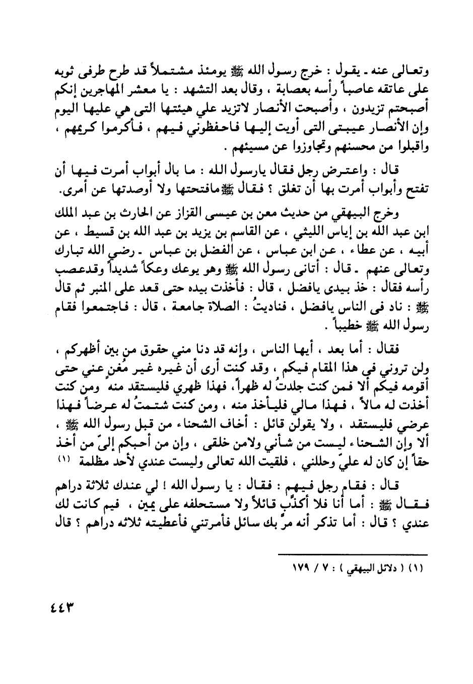 [ (1) ] (دلائل البيهقي) : 7/ 179.