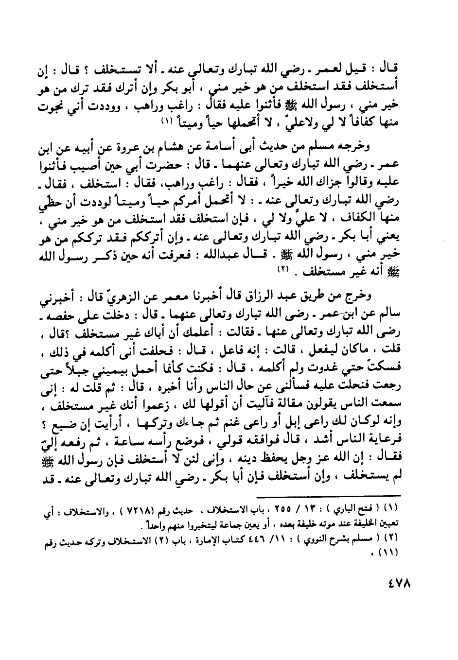 [ (1) ] (فتح الباري) : 13/ 255، باب الاستخلاف، حديث رقم (7218) ، والاستخلاف: أي تعيين الخليفة عند موته خليفة بعده، أو يعين جماعة ليتخيروا منهم واحدا.