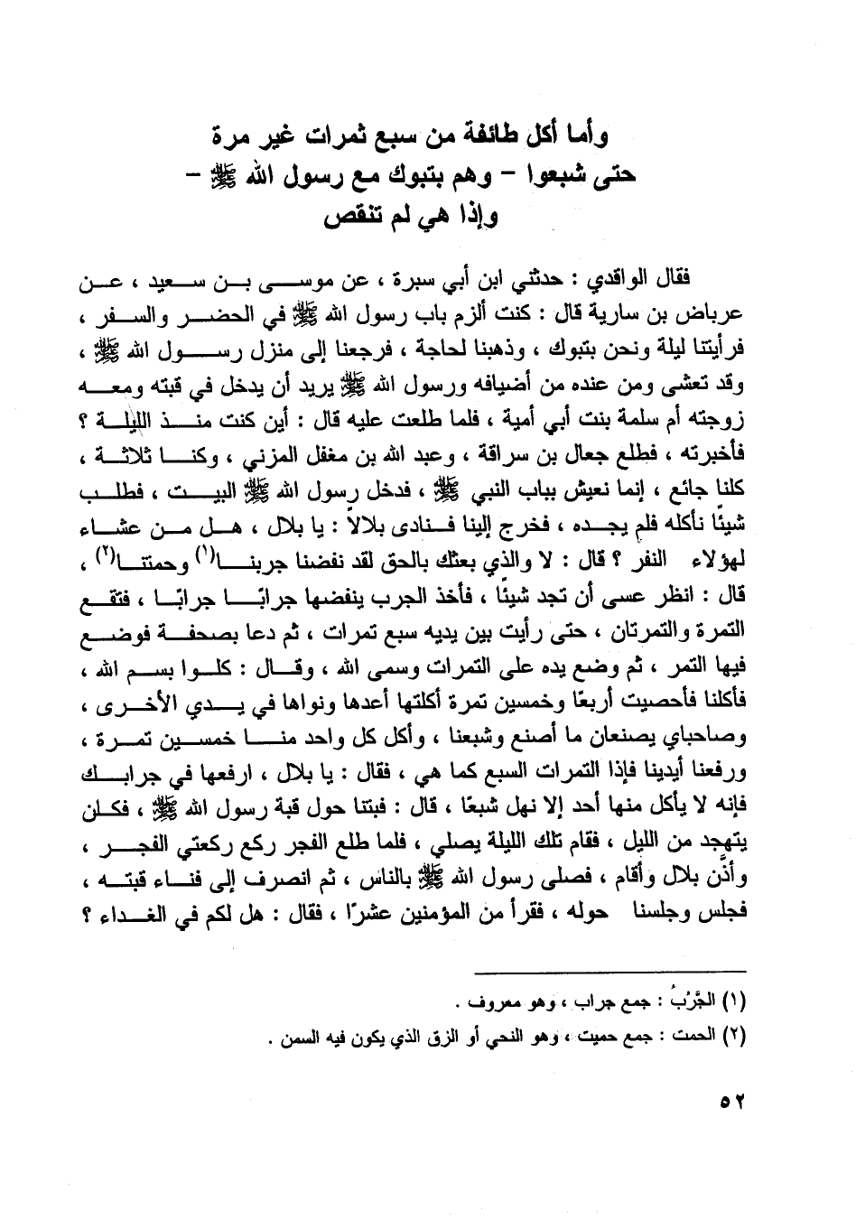 وأما أكل طائفة من سبع ثمرات غير مرة حتى شبعوا- وهم بتبوك مع رسول اللَّه صلّى اللَّه عليه وسلّم- وإذا هي لم تنقص