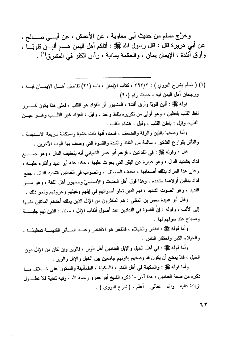 [ (1) ] (مسلم بشرح النووي) : 2/ 393، كتاب الإيمان، باب (21) تفاضل أهل الإيمان فيه، ورجحان أهل اليمن فيه، حديث رقم (90) .