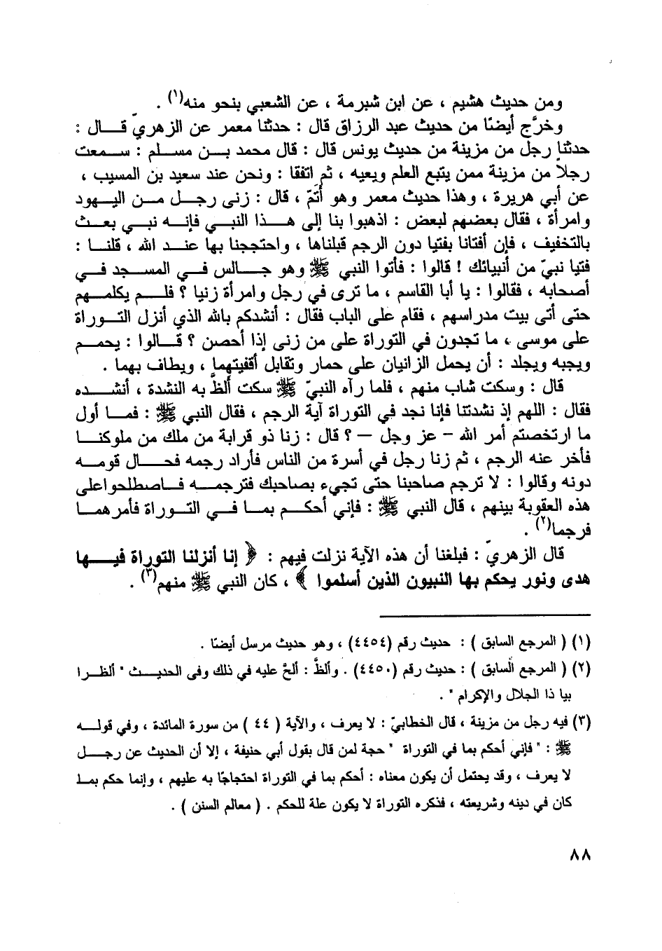 [ (3) ] فيه رجل من مزينة، قال الخطابيّ: لا يعرف، والآية (44) من سورة المائدة،