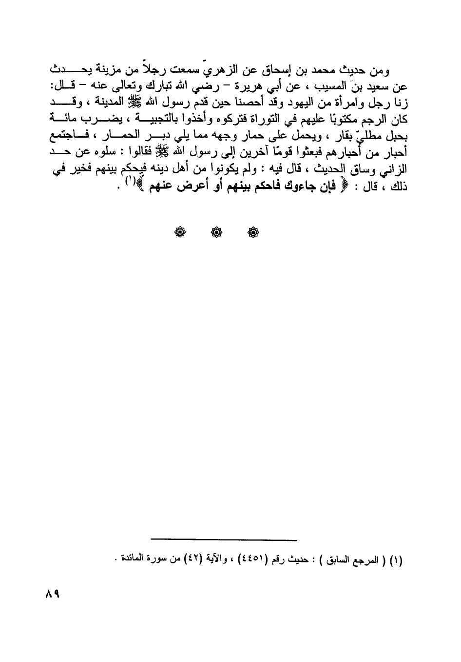 [ (1) ] (المرجع السابق) : حديث رقم (4451) ، والآية (42) من سورة المائدة.