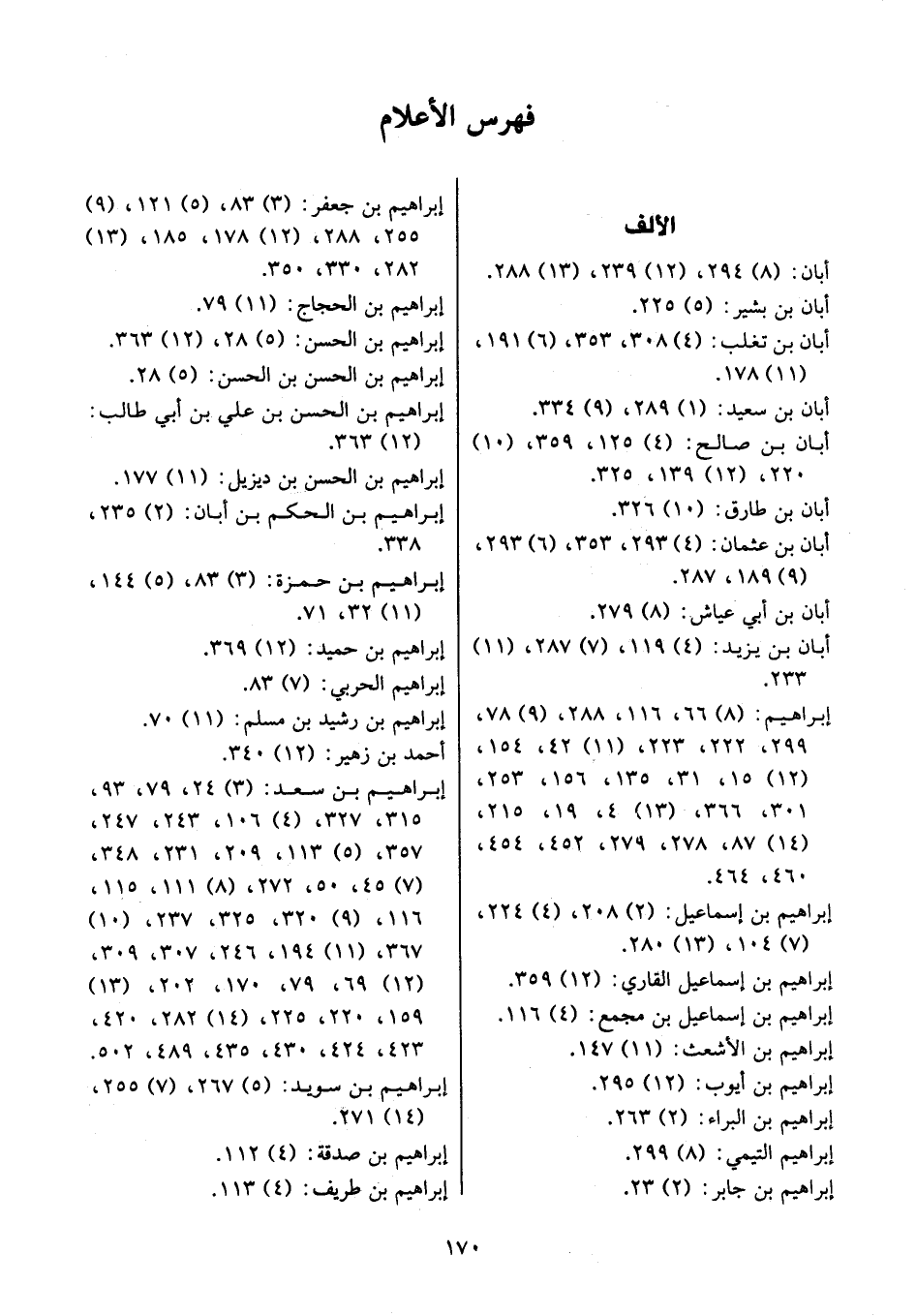 إبراهيم بن سعد: (3) 24، 79، 93، 315، 327، (4) 106، 243، 247، 357، (5) 113، 209، 231، 348، (7) 45، 50، 272، (8) 111، 115، 116، (9) 320، 325، 237، (10) 367، (11) 194، 246، 307، 309، (12) 69، 79، 170، 202، (13) 159، 220، 225، (14) 282، 420، 423، 424، 430، 435، 489، 502.