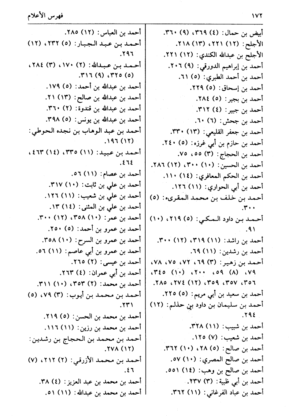 أحمد بن عباد الفرغاني: (11) 362. أحمد بن العباس: (12) 285.