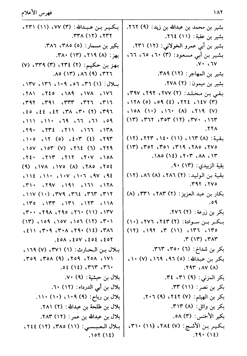 بكير بن الأشج: (7) 284، (11) 310، (14) 290. بكير بن عبد اللَّه: (3) 77، (11) 231، 232، (12) 338.