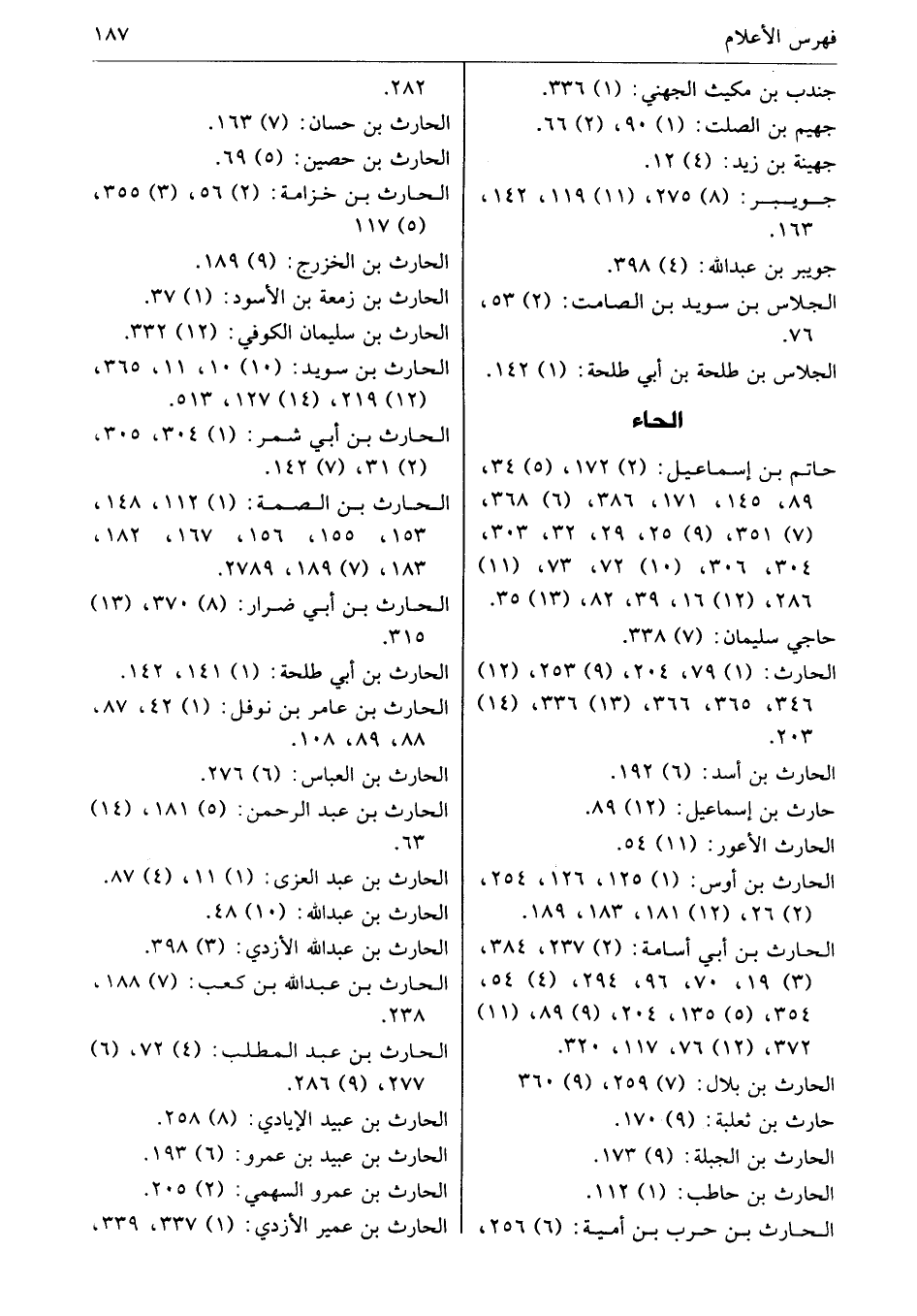 الحاء حاتم بن إسماعيل: (2) 172، (5) 34، 89، 145، 171، 386، (6) 368، (7) 351، (9) 25، 29، 32، 303، 304، 306، (10) 72، 73، (11) 286، (12) 16، 39، 82، (13) 35.