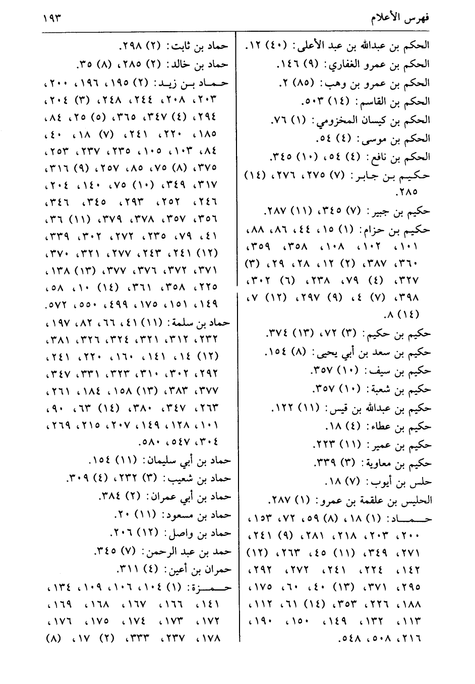 حماد بن سلمة: (11) 41، 66، 82، 197، 232، 312، 321، 324، 326، 381، (12) 14، 141، 160، 220، 241، 292، 302، 310، 323، 331، 347، 377، 383، (13) 158، 184، 261، 263، 347، 380، (14) 63، 90، 101، 128، 149، 207، 215، 269، 304، 547، 580.