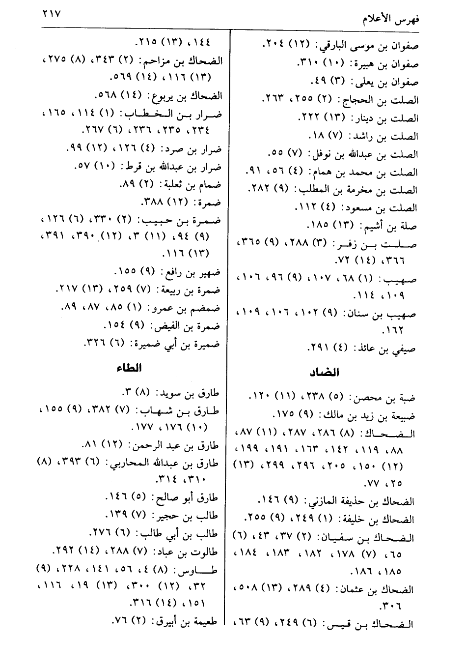 ضرار بن الخطاب: (1) 114، 165، 234، 235، 236، (6) 267.