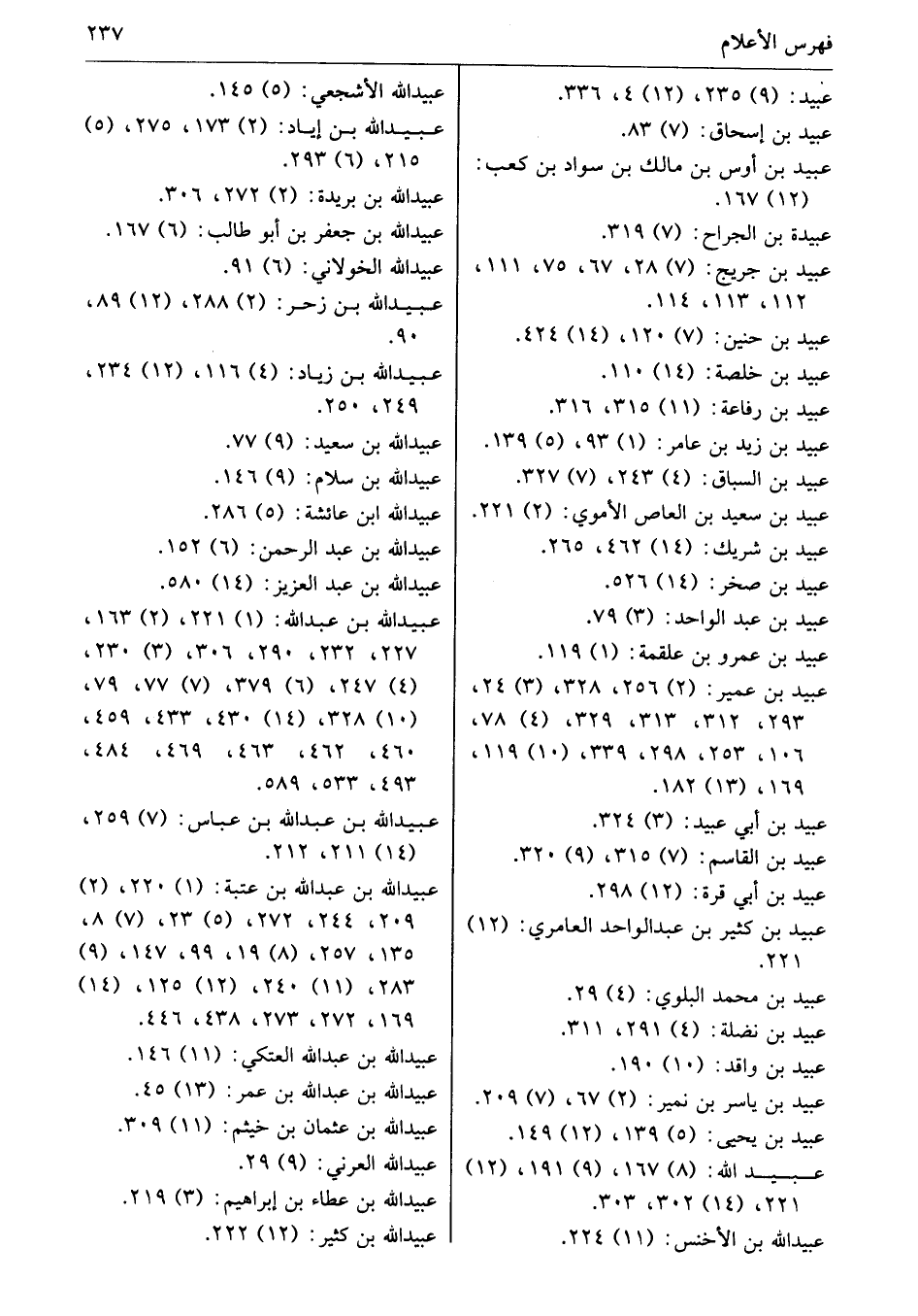عبيد اللَّه بن عبد اللَّه بن عتبة: (1) 220، (2) 209، 244، 272، (5) 23، (7) 8، 135، 257، (8) 19، 99، 147، (9) 283، (11) 240، (12) 125، (14) 169، 272، 273، 438، 446.