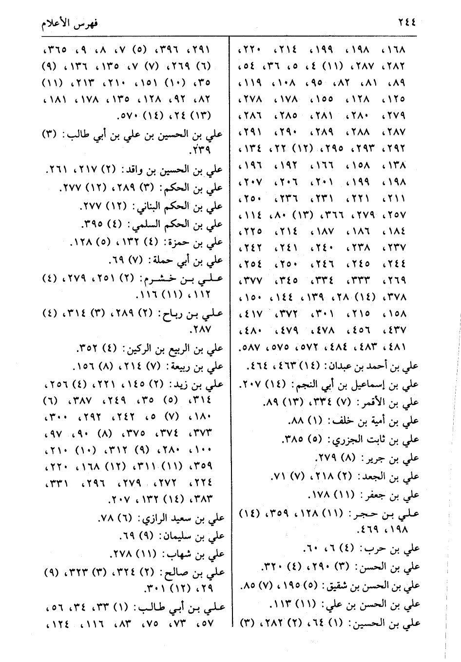 علي بن الحسين: (1) 64، (2) 282، (3) 291، 396، (5) 7، 8، 9، 365، (6) 269، (7) 7، 135، 136، (9) 35، (10) 151، 210، 213، (11) 82، 92، 128، 135، 178، 181، (13) 24، (14) 570.