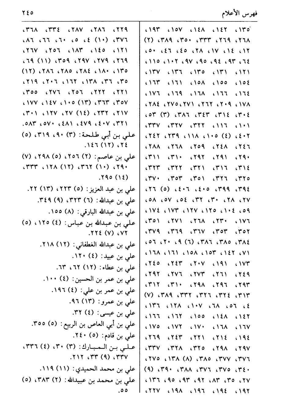 علي بن عبد العزيز: (5) 223، (13) 22، علي بن عبد اللَّه: (6) 323، (9) 349.