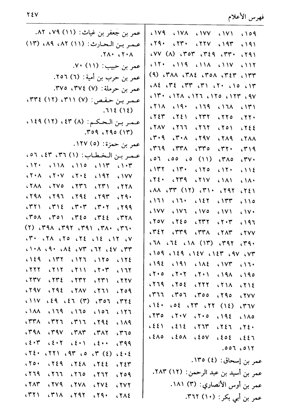 عمر بن الخطاب: (1) 36، 43، 56، 103، 113، 115، 118، 120، 177، 192، 204، 207، 208، 228، 231، 236، 275، 288، 290، 293، 294، 296، 298، 299، 302، 303، 314، 321، 328، 344، 345، 351، 358، 360، 380، 391، 392، 398، (2) 7، 12، 14، 24، 25، 28، 30، 33، 47، 62، 73، 84، 90، 108، 124، 125، 126، 132، 149، 162، 203، 211، 212، 222، 227، 231، 232، 234، 237، 259، 261، 287، 294، 297، 324، 356، (3) 46، 49، 117، 126، 156، 165، 169، 188، 189، 294، 316، 326، 338، 365، 382، 383، 397، 398، 399، 400، 401، 402، 403، 404، (4) 3، 5، 93، 221، 240، 243، 244، 248، 249، 250، 259، 262، 265، 266، 269، 272، 274، 278، 279، 283، 284، 290، 292، 318، 321،