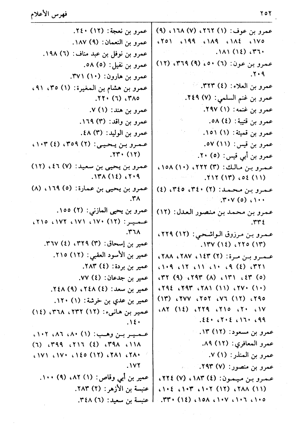 عمرو بن ميمون: (4) 183، (7) 224، (11) 288، (12) 102، 103، 104، 105، 106، 107، 158، (14) 330. عمرو بن نعجة: (12) 240.